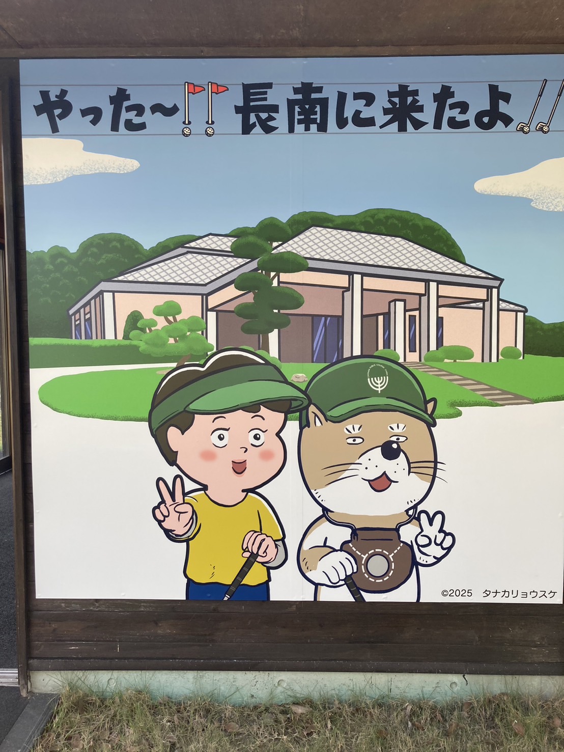 10番ホール ティーグラウンドそばにあるスタートハウスの壁面にアートを設置しました小湊鐵道キャラクターの「ぜんじろー」と「みなと君」がクラブハウスをバックに登場!!インスタ映えスポット、ゴルフの思い出にワンショット、としてお役立てしていただければと思います